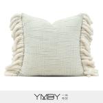 This cushion cover features a textured woven center combined with soft tassel sides, creating a cozy and stylish look. The delicate texture and layered fringe design add depth and warmth to any space. Perfect for sofas, beds, or lounge areas, it enhances your home with a soft and elegant touch.