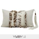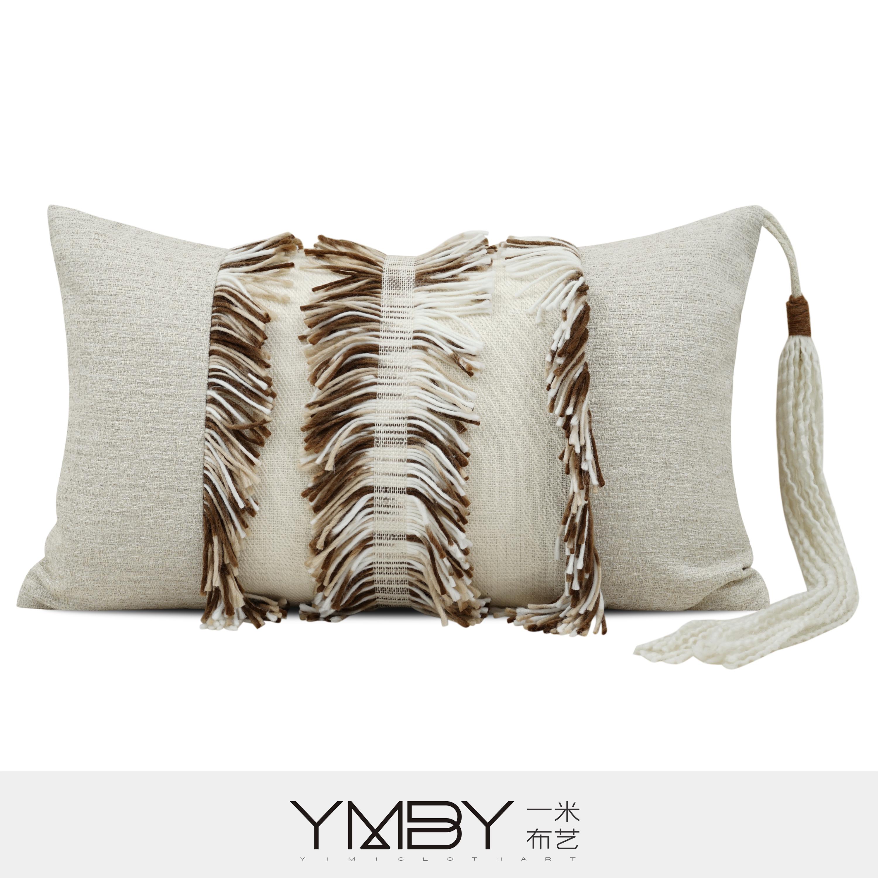 这款长形抱枕套采用立体流苏拼接设计,搭配柔和的米色底布,整体呈现出丰富层次与高级质感。中间的多层流苏细节增加空间视觉焦点,让家居环境更具设计感与温度。适合摆放在沙发或床头,打造精致又舒适的居家氛围。