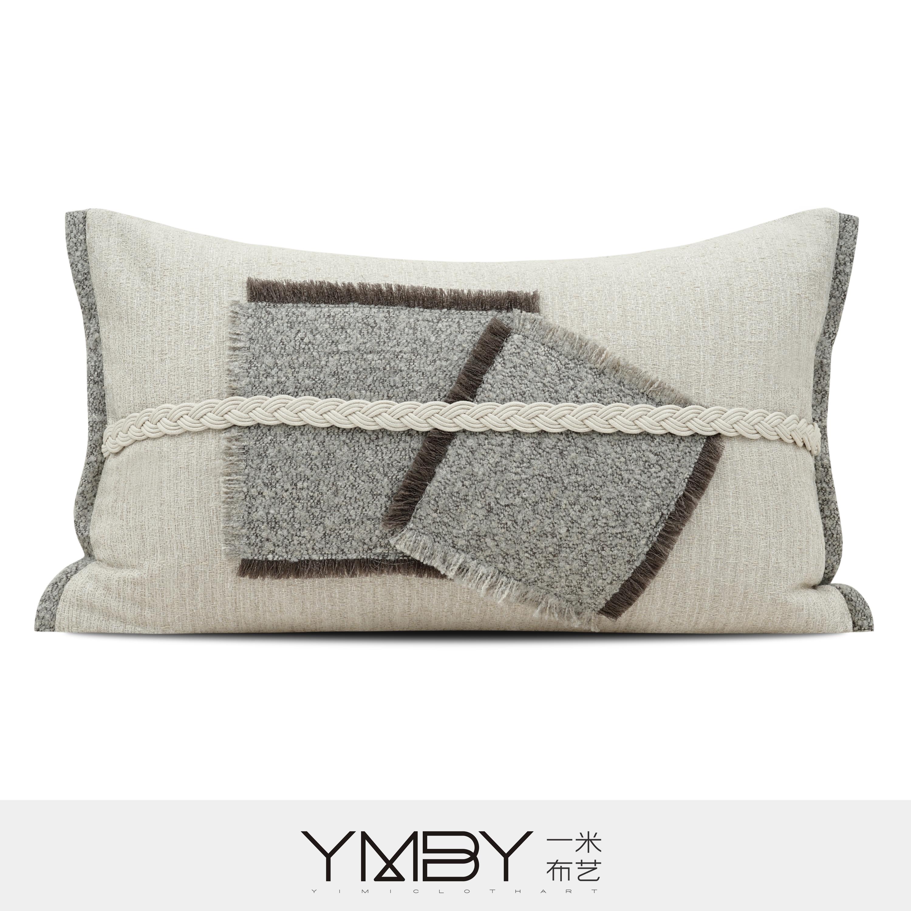 这款长形抱枕采用拼接设计工艺,将不同纹理面料层叠组合,搭配立体绳编细节与流苏边点缀,整体层次丰富且极具设计感。中性色调柔和百搭,非常适合作为沙发或床品的视觉焦点,提升空间质感与高级感。