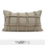 This lumbar cushion features a structured grid design with subtle fringe detailing, adding depth and texture to your space. Its neutral beige tone blends effortlessly with modern interiors, making it a perfect centerpiece for sofa styling.