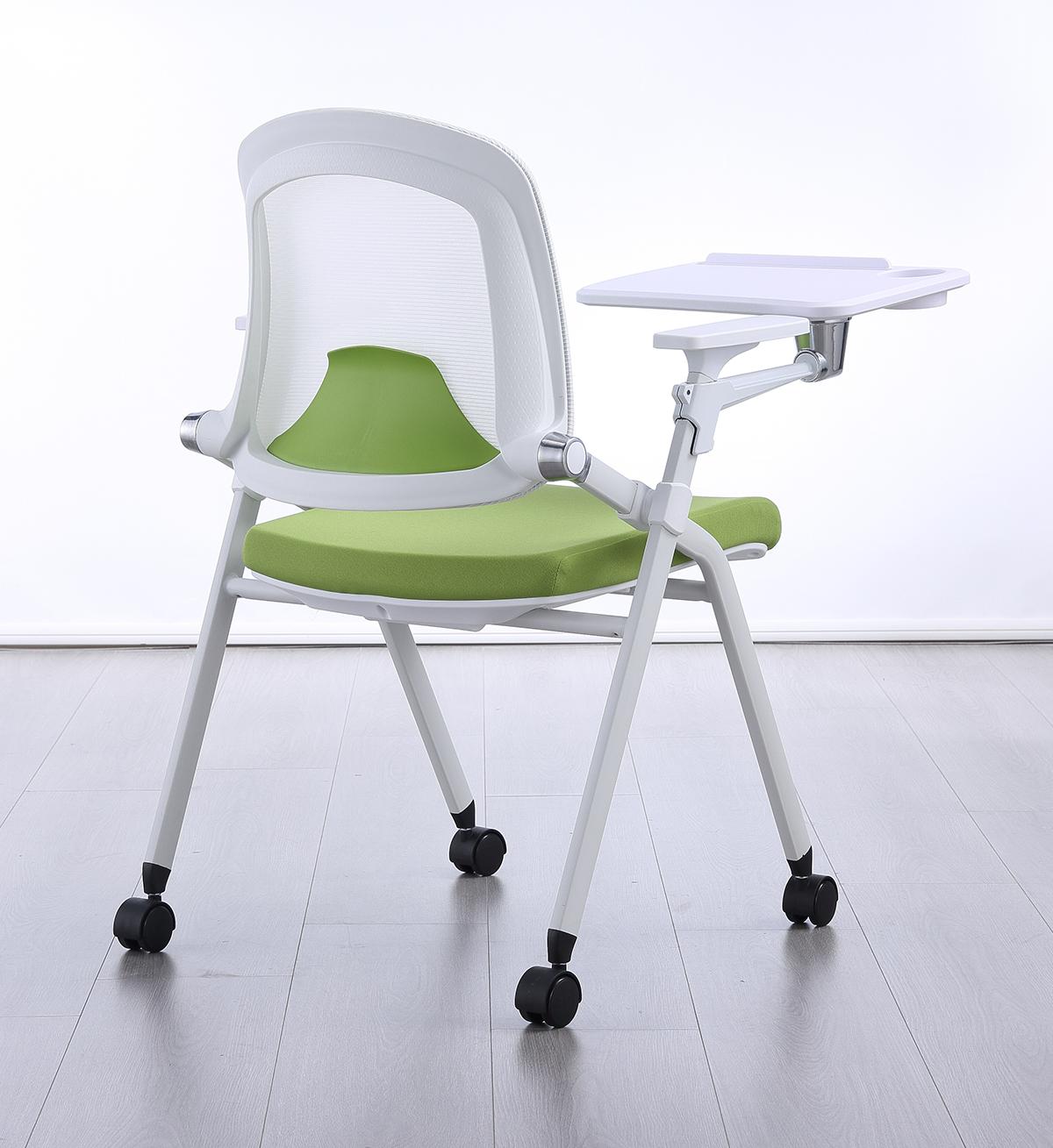Featuring a fiber-reinforced PP backrest, breathable mesh, cushioned seat, reclining function, and integrated writing tablet, it ensures comfort during long sessions. With stackable and foldable capabilities, it maximizes space utilization — ideal for professional and educational spaces.